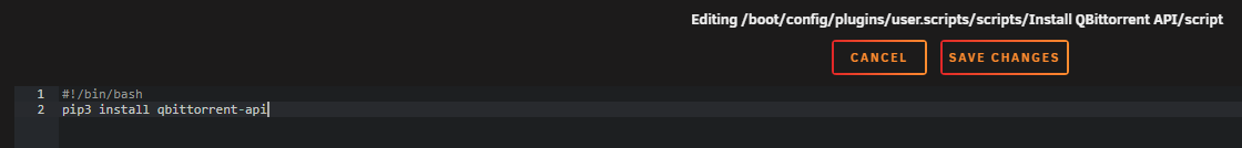 The script needs the qbittorrent-api module to work, so you need to install it when your unRAID server starts or when the Array starts for the first time.