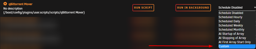 Click the schedule dropdown to choose when the script should run. Select Custom.
