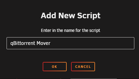 A popup will ask you to name the script. For this example, use qBittorrent Mover and click OK.