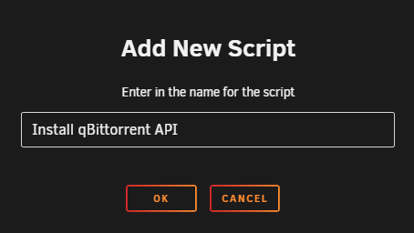 A popup will ask you to name the script. For this example, use Install qBittorrent-API and click OK.