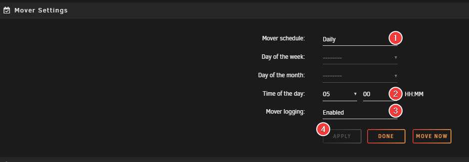 - This prevents the mover from running at the schedule set in Mover Settings. Setting this to "Yes" effectively disables the plugin schedule.